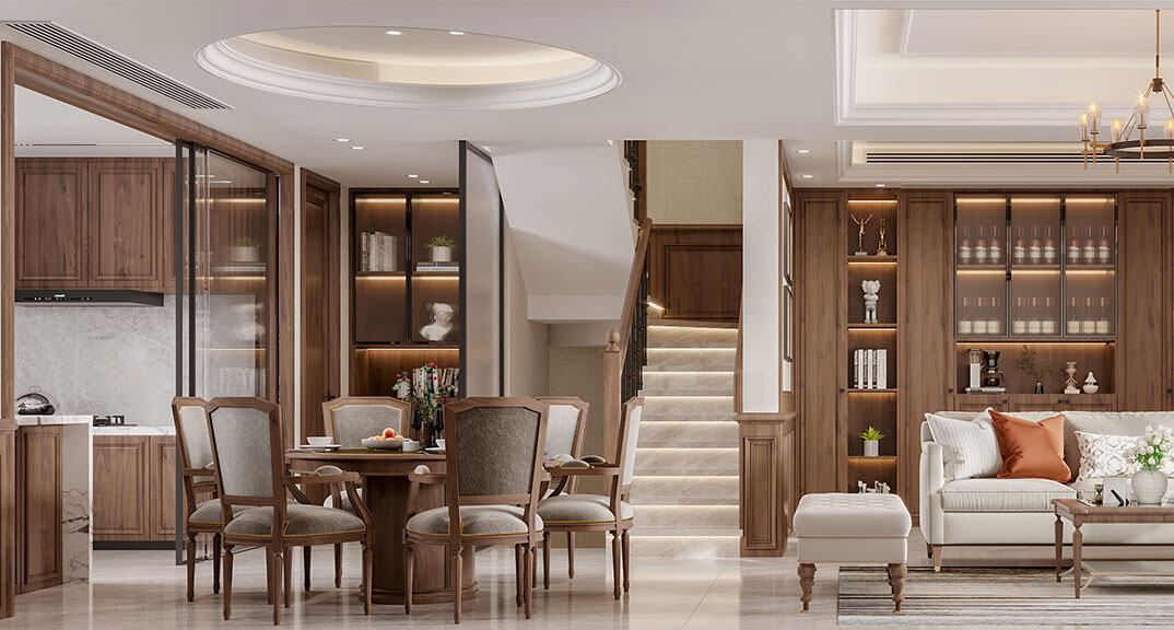 金秋泰和郡180㎡別墅餐廳美式風(fēng)格裝修案例效果圖