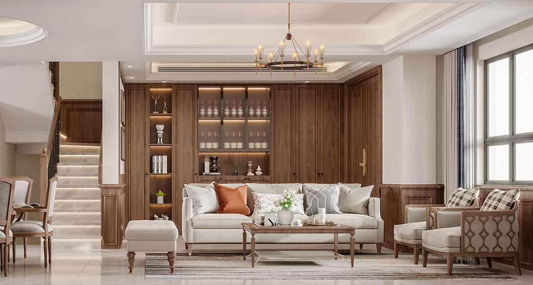金秋泰和郡180㎡別墅客廳沙發(fā)美式風(fēng)格裝修案例效果圖