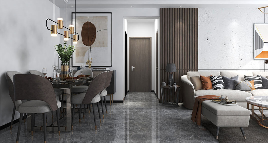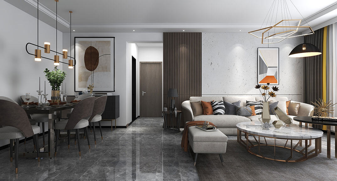 本案設(shè)計(jì)風(fēng)格為意式輕奢,拒絕了濃烈的色彩,以一種簡單、純粹的設(shè)計(jì)語言,回歸生活的本質(zhì),留存給居住者更多生活想象的空間。 整體空間灰橙色、駝色、與淺暖灰色調(diào)展現(xiàn)輕奢低調(diào)的高級質(zhì)感,簡約時(shí)尚的家具又增添了一份現(xiàn)代感,重新梳理了空間功能和尺寸,客廳陽臺(tái)一體化設(shè)計(jì),最大限度引入自然光,高級灰搭配中性色系木飾面,打造一個(gè)舒適的高品質(zhì)空間。在空間設(shè)計(jì)與色彩配搭上,精準(zhǔn)地把控節(jié)奏,用設(shè)計(jì)表達(dá)空間的包容性,更多的是通過人性化思考,創(chuàng)造一個(gè)功能性完整的舒適生活空間。大塊的木飾面、金屬元素和燈 光的碰撞搭配,凸顯出強(qiáng)大張力,共同打造出意式輕奢腔調(diào)十足的時(shí)尚與質(zhì)感。