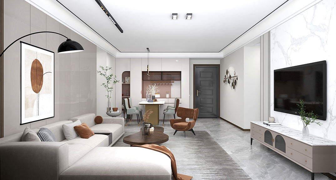 以簡潔、清晰和功能性為特征的室內(nèi)設(shè)計;它主要強調(diào)了空間的簡化和精煉,追求線條簡單、空間通透、色彩明亮、材質(zhì)自然等特點,注重形式與功能的結(jié)合。他們希望有一個時尚、現(xiàn)代的功能性空間,在整個空間的設(shè)計上用了暖灰調(diào)來與簡約的線條感來相呼應(yīng),能改造出一個通透、流暢的空間感。