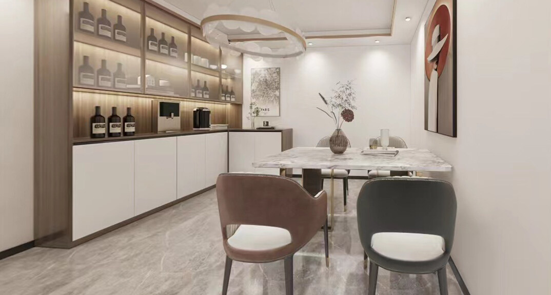 魯商藍(lán)岸公館124㎡三室二廳餐廳現(xiàn)代中式風(fēng)格戶型研發(fā)案例效果圖