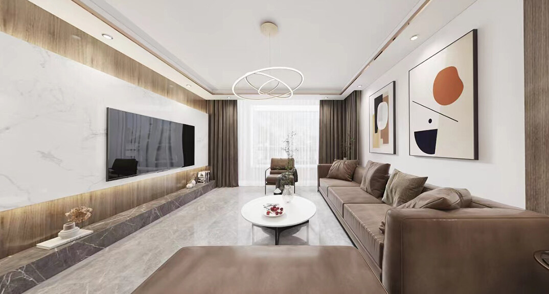 本案設(shè)計(jì)風(fēng)格為意式輕奢,拒絕了濃烈的色彩,以一種簡單、純粹的設(shè)計(jì)語言,回歸生活的本質(zhì),留存給居住者更多生活想象的空間。 整體空間灰橙色、駝色、與淺暖灰色調(diào)展現(xiàn)輕奢低調(diào)的高級質(zhì)感,簡約時(shí)尚的家具又增添了一份現(xiàn)代感,重新梳理了空間功能和尺寸,客廳陽臺一體化設(shè)計(jì),最大限度引入自然光,高級灰搭配中性色系木飾面,打造一個(gè)舒適的高品質(zhì)空間。在空間設(shè)計(jì)與色彩配搭上,精準(zhǔn)地把控節(jié)奏,用設(shè)計(jì)表達(dá)空間的包容性,更多的是通過人性化思考,創(chuàng)造一個(gè)功能性完整的舒適生活空間。大塊的木飾面、金屬元素和燈 光的碰撞搭配,凸顯出強(qiáng)大張力,共同打造出意式輕奢腔調(diào)十足的時(shí)尚與質(zhì)感。