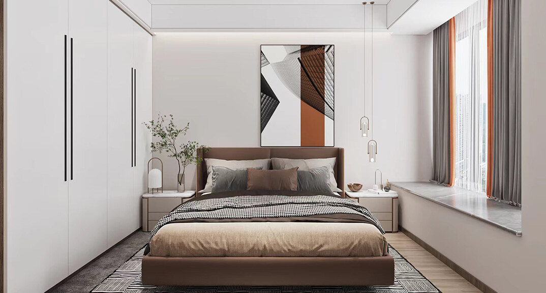 魯商藍(lán)岸公館124㎡三室二廳主臥現(xiàn)代中式風(fēng)格戶型研發(fā)案例效果圖