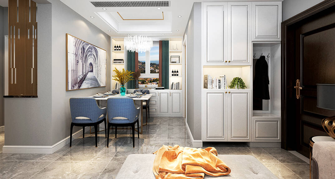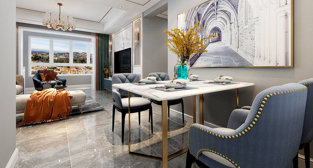 海爾產(chǎn)城創(chuàng)悅湖蘭庭116m2餐廳輕奢風(fēng)格裝修案例效果圖