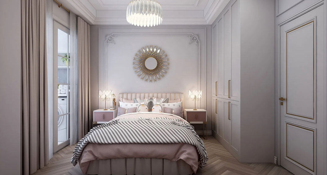 御苑小區(qū)137㎡三室二廳臥室法式輕奢風(fēng)格裝修案例效果圖