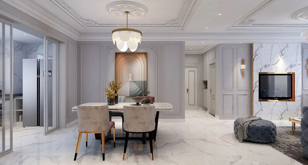 整體為淺色基調(diào),整體體現(xiàn)法式浪漫的情懷,墻面石膏線裝飾,吊頂?shù)窕ㄔO(shè)計(jì),表達(dá)一種簡約中帶著優(yōu)雅奢華的氣質(zhì),看到這個(gè)風(fēng)格的設(shè)計(jì)都會(huì)想到業(yè)主是柔美優(yōu)雅的女性,富有生活情趣,把生活過成如詩一般的優(yōu)雅