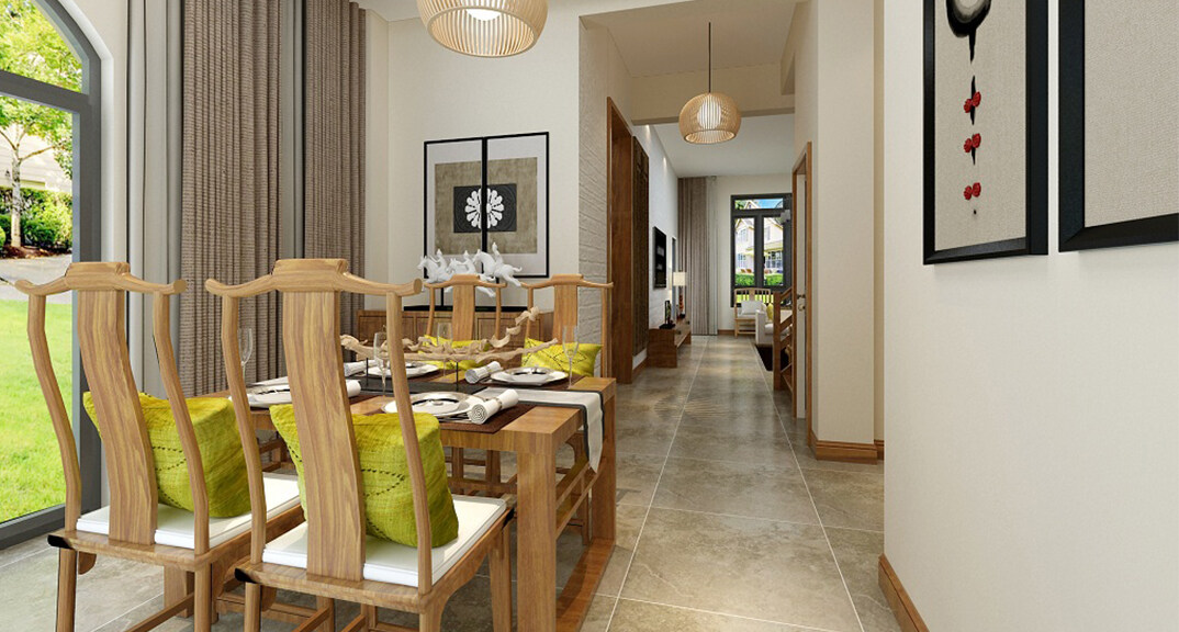 安納溪220㎡獨棟別墅餐廳新中式風(fēng)格裝修案例效果圖