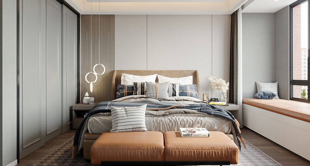 匯豪觀邸220㎡別墅主臥現(xiàn)代風(fēng)格裝修案例效果圖
