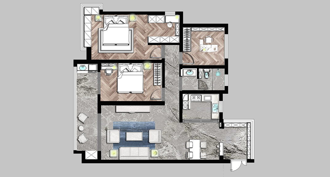 壹號學府132㎡三室兩廳次臥美式風格裝修案例效果圖