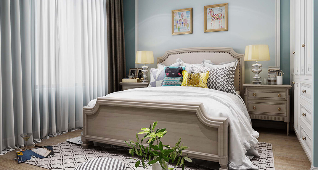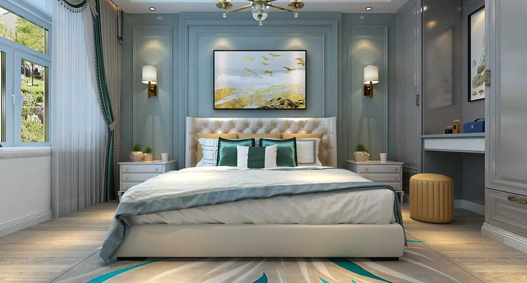 壹號學府132㎡三室兩廳主臥美式風格裝修案例效果圖