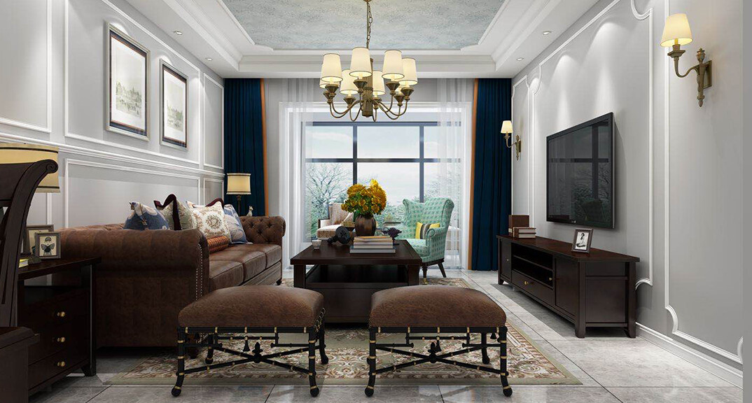 壹號學府132㎡三室兩廳客廳美式風格裝修案例效果圖
