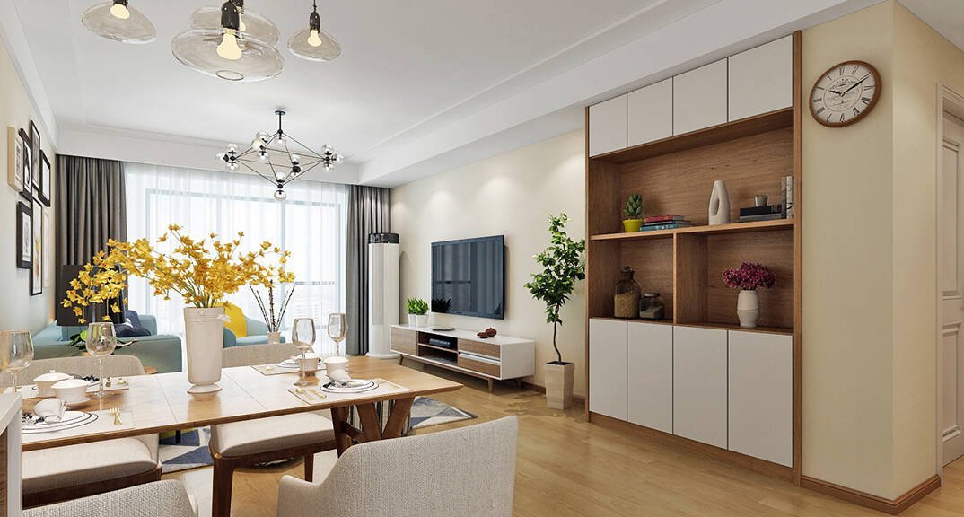 本案整體以現(xiàn)代中式風(fēng)格為主,既有現(xiàn)代風(fēng)格簡約、明朗的線條,又有中國傳統(tǒng)內(nèi)涵與韻味。墻面大面積使用暖色烘托整體氛圍,融洽中式與現(xiàn)代簡約兩種風(fēng)格??臻g更寬闊舒適玄關(guān)收納、玄關(guān)與干區(qū)相結(jié)合,既解放的外衛(wèi)的空間客廳電視背景是一面裝飾柜,豐富了空間,增加了收納和儲物,美觀又實用。