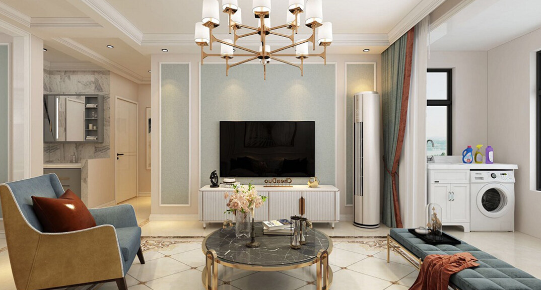 桂花園110㎡三室兩廳客廳輕奢風(fēng)格裝修案例效果圖