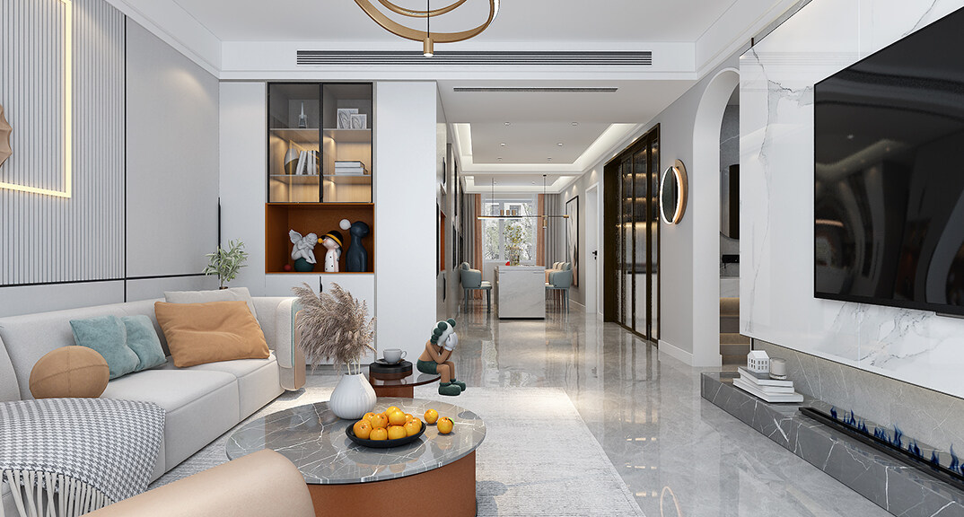 本案設(shè)計(jì)風(fēng)格為意式輕奢,拒絕了濃烈的色彩,以一種簡(jiǎn)單、純粹的設(shè)計(jì)語(yǔ)言,回歸生活的本質(zhì),留存給居住者更多生活想象的空間。 整體空間灰橙色、駝色、與淺暖灰色調(diào)展現(xiàn)輕奢低調(diào)的高級(jí)質(zhì)感,簡(jiǎn)約時(shí)尚的家具又增添了一份現(xiàn)代感,重新梳理了空間功能和尺寸,客廳陽(yáng)臺(tái)一體化設(shè)計(jì),最大限度引入自然光,高級(jí)灰搭配中性色系木飾面,打造一個(gè)舒適的高品質(zhì)空間。在空間設(shè)計(jì)與色彩配搭上,精準(zhǔn)地把控節(jié)奏,用設(shè)計(jì)表達(dá)空間的包容性,更多的是通過人性化思考,創(chuàng)造一個(gè)功能性完整的舒適生活空間。大塊的木飾面、金屬元素和燈 光的碰撞搭配,凸顯出強(qiáng)大張力,共同打造出意式輕奢腔調(diào)十足的時(shí)尚與質(zhì)感。