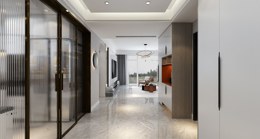 本案整體以現(xiàn)代中式風(fēng)格為主,既有現(xiàn)代風(fēng)格簡(jiǎn)約、明朗的線條,又有中國(guó)傳統(tǒng)內(nèi)涵與韻味。墻面大面積使用暖色烘托整體氛圍,融洽中式與現(xiàn)代簡(jiǎn)約兩種風(fēng)格??臻g更寬闊舒適玄關(guān)收納、玄關(guān)與干區(qū)相結(jié)合,既解放的外衛(wèi)的空間客廳電視背景是一面裝飾柜,豐富了空間,增加了收納和儲(chǔ)物,美觀又實(shí)用。