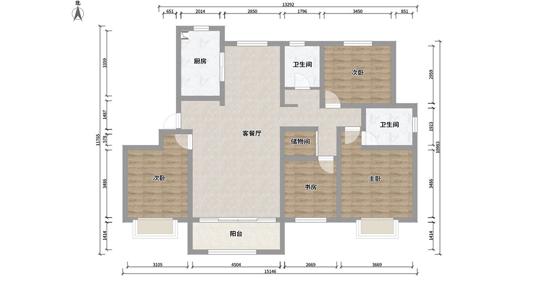 桂花園132㎡三室兩廳戶型平面布局圖