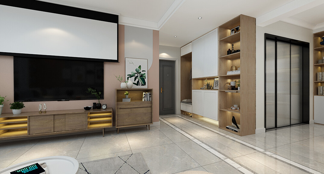 本案整體以現(xiàn)代中式風(fēng)格為主,既有現(xiàn)代風(fēng)格簡(jiǎn)約、明朗的線條,又有中國(guó)傳統(tǒng)內(nèi)涵與韻味。墻面大面積使用暖色烘托整體氛圍,融洽中式與現(xiàn)代簡(jiǎn)約兩種風(fēng)格。空間更寬闊舒適玄關(guān)收納、玄關(guān)與干區(qū)相結(jié)合,既解放的外衛(wèi)的空間客廳電視背景是一面裝飾柜,豐富了空間,增加了收納和儲(chǔ)物,美觀又實(shí)用。