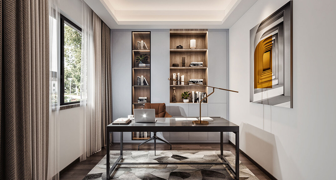 本案設(shè)計(jì)風(fēng)格為意式輕奢,拒絕了濃烈的色彩,以一種簡單、純粹的設(shè)計(jì)語言,回歸生活的本質(zhì),留存給居住者更多生活想象的空間。 整體空間灰橙色、駝色、與淺暖灰色調(diào)展現(xiàn)輕奢低調(diào)的高級(jí)質(zhì)感,簡約時(shí)尚的家具又增添了一份現(xiàn)代感,重新梳理了空間功能和尺寸,客廳陽臺(tái)一體化設(shè)計(jì),最大限度引入自然光,高級(jí)灰搭配中性色系木飾面,打造一個(gè)舒適的高品質(zhì)空間。在空間設(shè)計(jì)與色彩配搭上,精準(zhǔn)地把控節(jié)奏,用設(shè)計(jì)表達(dá)空間的包容性,更多的是通過人性化思考,創(chuàng)造一個(gè)功能性完整的舒適生活空間。大塊的木飾面、金屬元素和燈 光的碰撞搭配,凸顯出強(qiáng)大張力,共同打造出意式輕奢腔調(diào)十足的時(shí)尚與質(zhì)感。