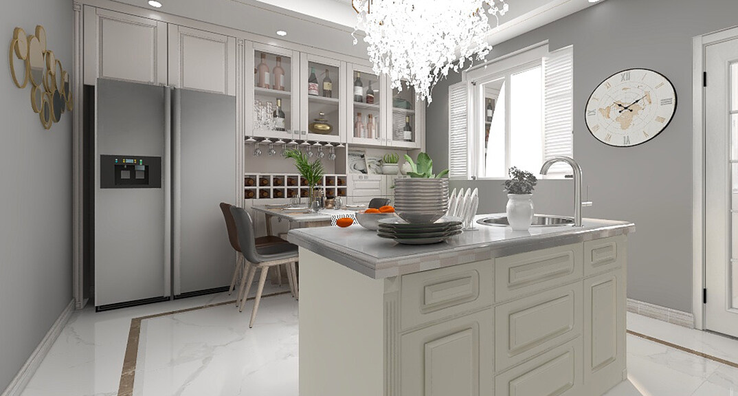 恒大金沙灘100㎡兩室兩廳廚房歐式輕奢風(fēng)格裝修案例效果圖