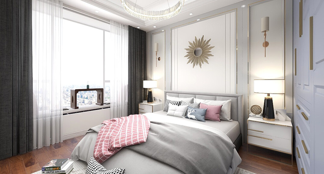 恒大金沙灘100㎡兩室兩廳臥室歐式輕奢風(fēng)格裝修案例效果圖