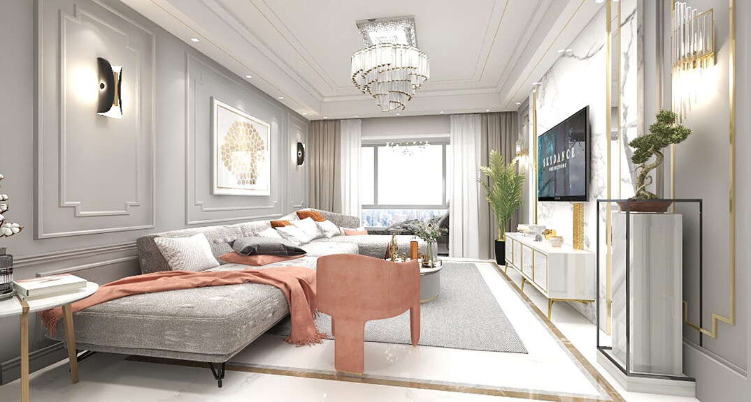 恒大金沙灘100㎡兩室兩廳客廳歐式輕奢風(fēng)格裝修案例效果圖