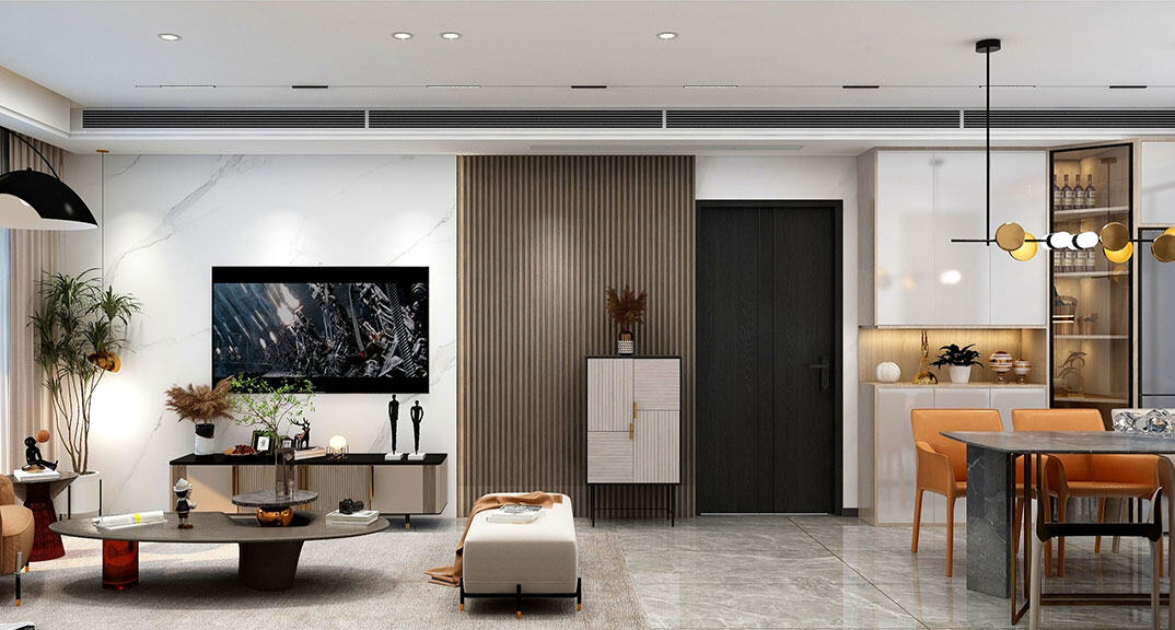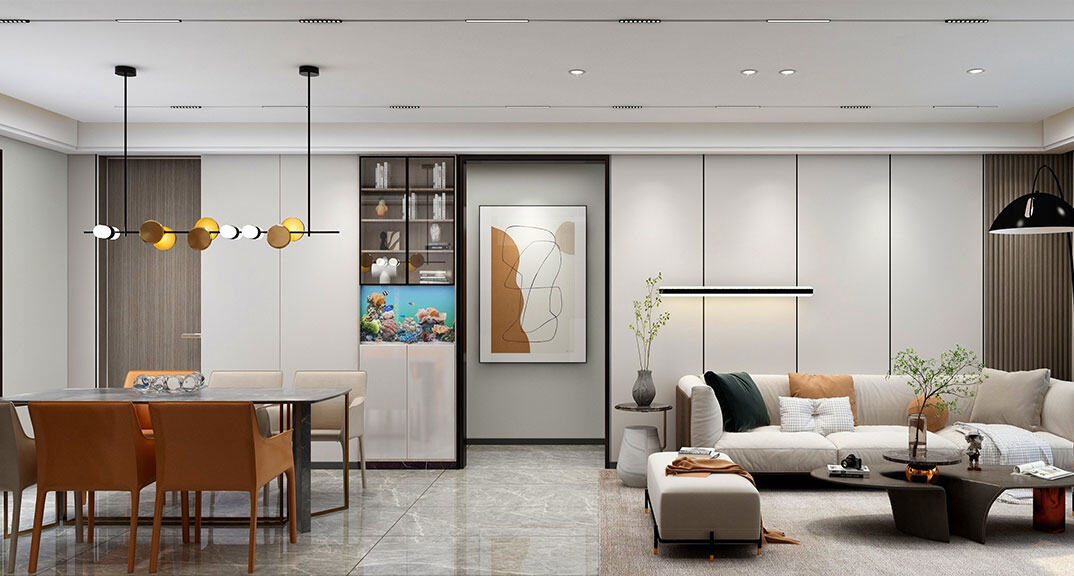 越秀鉑悅府132㎡三室兩廳客餐廳現(xiàn)代輕奢風(fēng)格裝修案例效果圖