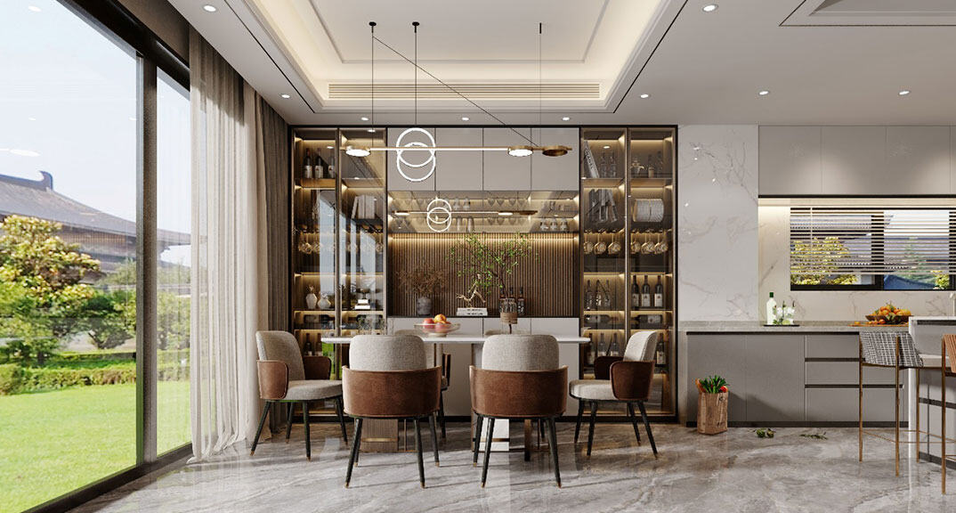 青島小鎮(zhèn)175㎡別墅下疊餐廳輕奢極簡風格裝修案例效果圖