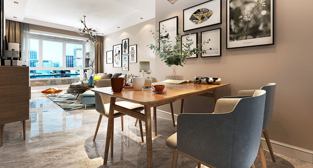 天峰首府97㎡三室兩廳客餐廳北歐風(fēng)格裝修案例效果圖