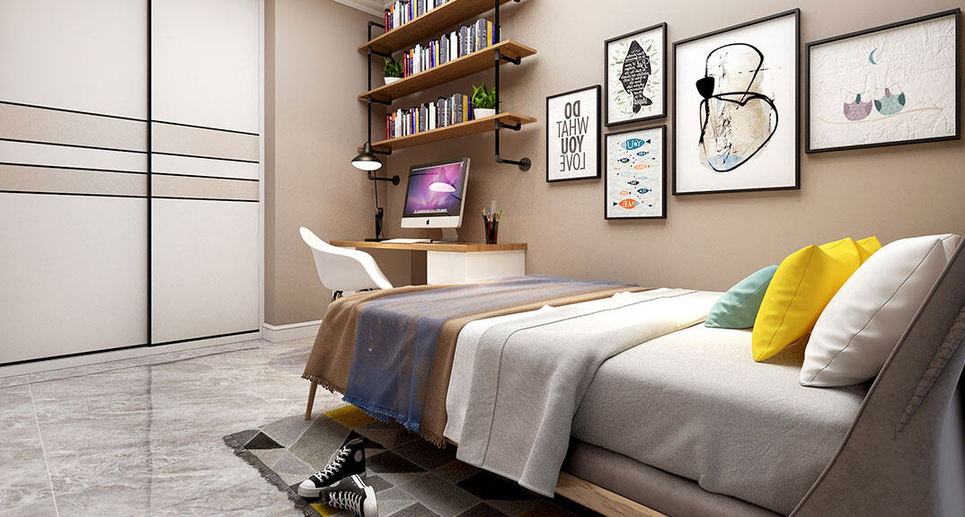 天峰首府97㎡三室兩廳兒童房北歐風(fēng)格裝修案例效果圖
