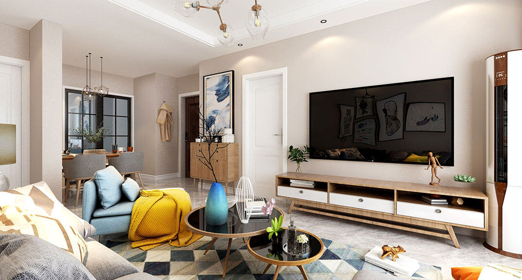 天峰首府97㎡三室兩廳客廳電視北歐風(fēng)格裝修案例效果圖