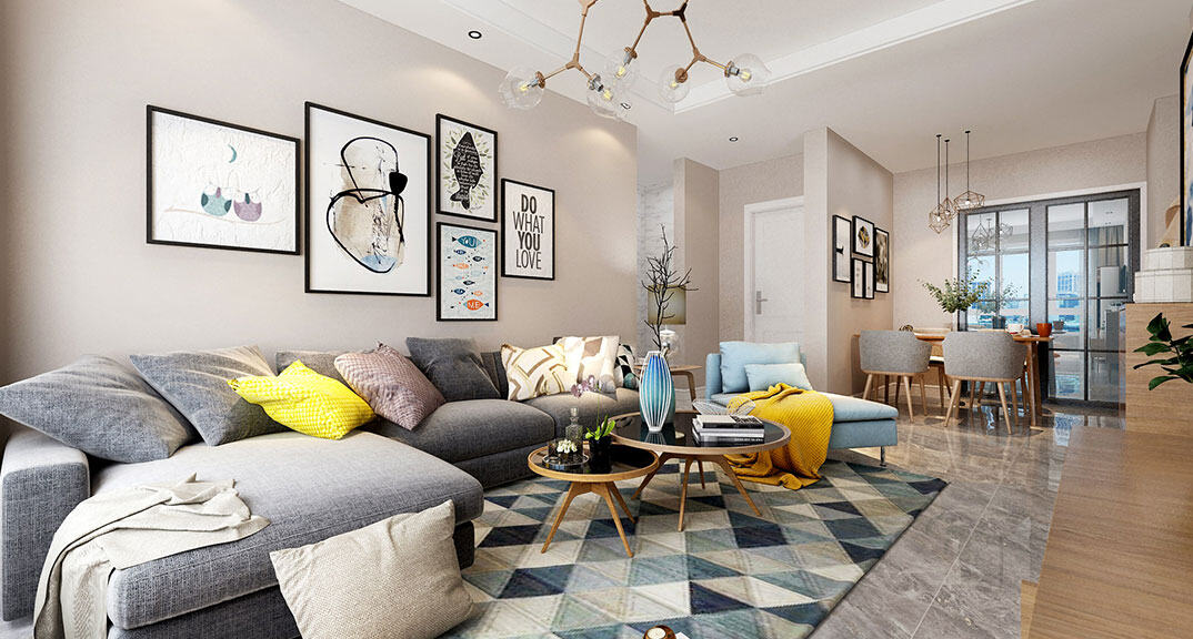 天峰首府97㎡三室兩廳客廳沙發(fā)北歐風(fēng)格裝修案例效果圖