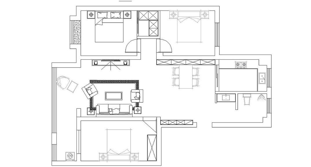 裕升華庭123㎡三室兩廳次臥美式風(fēng)格裝修案例效果圖