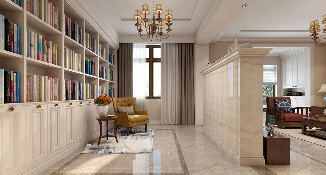 龍湖九里香緹150㎡別墅下疊書房美式風(fēng)格裝修案例效果圖