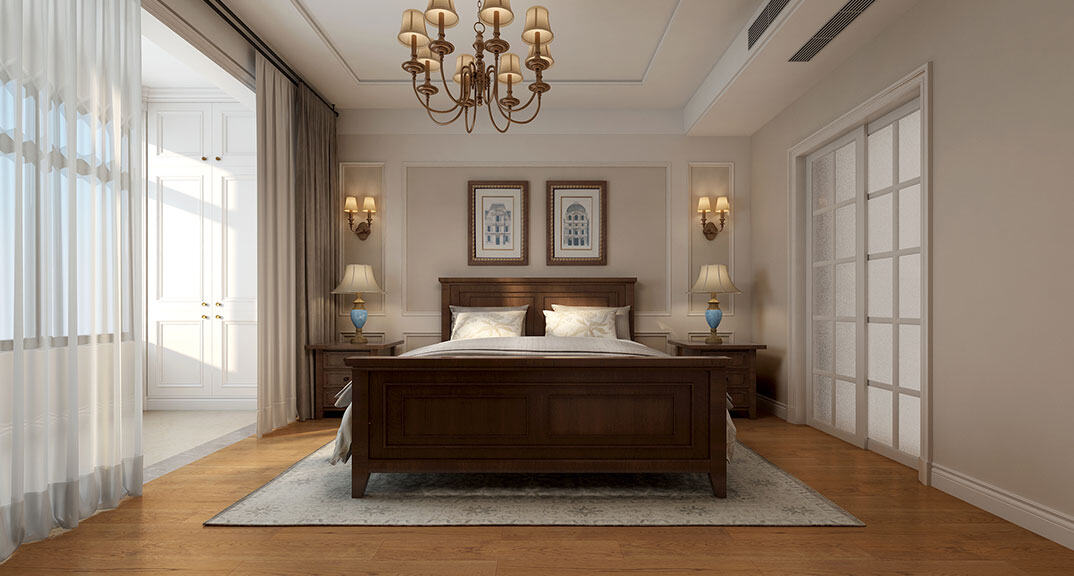 龍湖九里香緹150㎡別墅下疊主臥美式風(fēng)格裝修案例效果圖