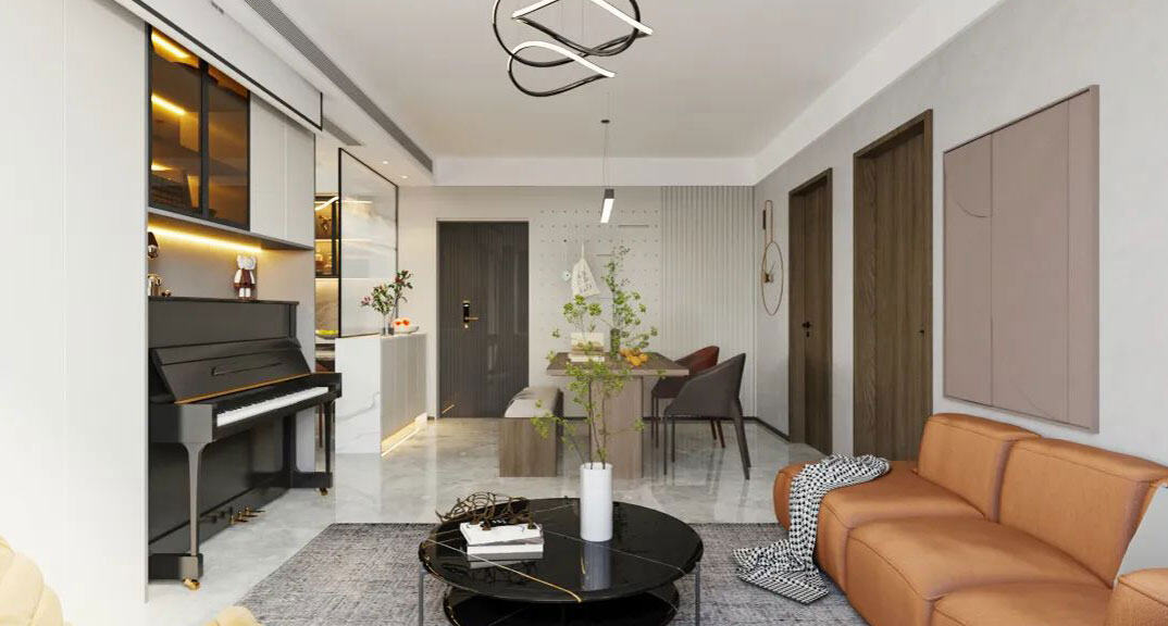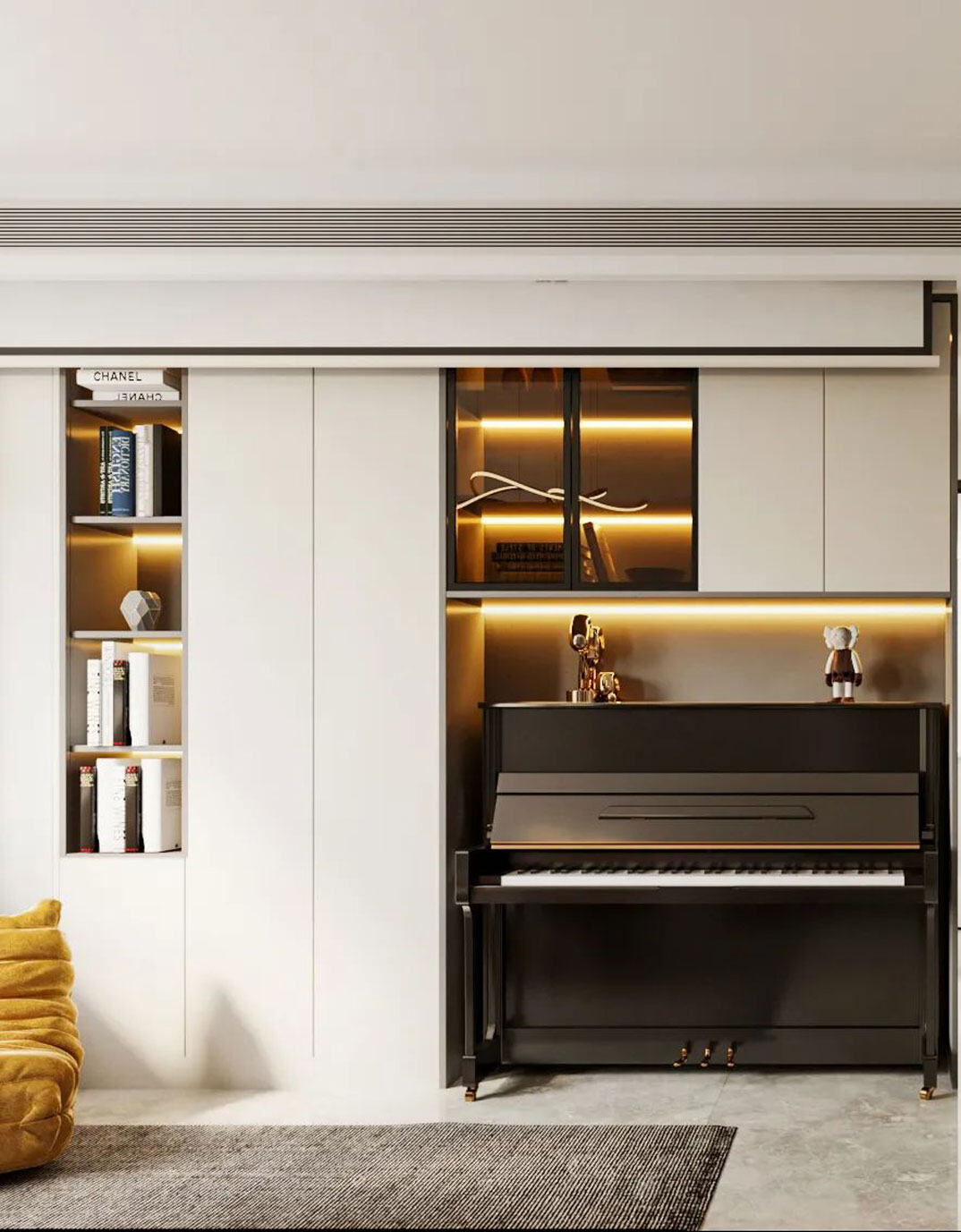 金域華庭110㎡三室兩廳鋼琴室輕奢風(fēng)格裝修案例效果圖