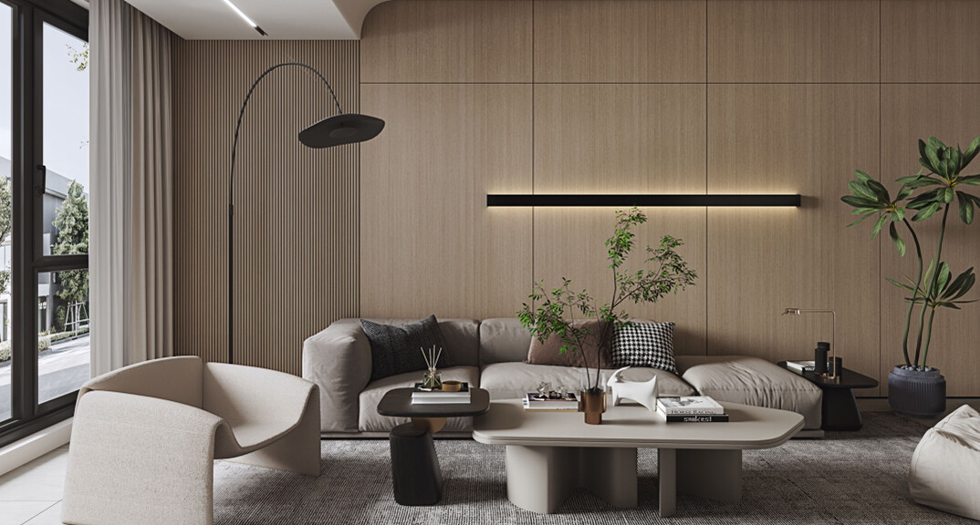 本案設(shè)計(jì)風(fēng)格為意式輕奢,拒絕了濃烈的色彩,以一種簡單、純粹的設(shè)計(jì)語言,回歸生活的本質(zhì),留存給居住者更多生活想象的空間。 整體空間灰橙色、駝色、與淺暖灰色調(diào)展現(xiàn)輕奢低調(diào)的高級質(zhì)感,簡約時(shí)尚的家具又增添了一份現(xiàn)代感,重新梳理了空間功能和尺寸,客廳陽臺(tái)一體化設(shè)計(jì),最大限度引入自然光,高級灰搭配中性色系木飾面,打造一個(gè)舒適的高品質(zhì)空間。在空間設(shè)計(jì)與色彩配搭上,精準(zhǔn)地把控節(jié)奏,用設(shè)計(jì)表達(dá)空間的包容性,更多的是通過人性化思考,創(chuàng)造一個(gè)功能性完整的舒適生活空間。大塊的木飾面、金屬元素和燈 光的碰撞搭配,凸顯出強(qiáng)大張力,共同打造出意式輕奢腔調(diào)十足的時(shí)尚與質(zhì)感。