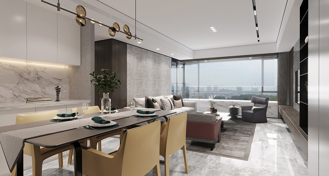 青鋼小鎮(zhèn)100㎡三室兩廳客餐廳現(xiàn)代簡約風格裝修案例效果圖