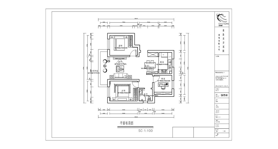 青鋼小鎮(zhèn)100㎡三室兩廳戶型平面布局圖