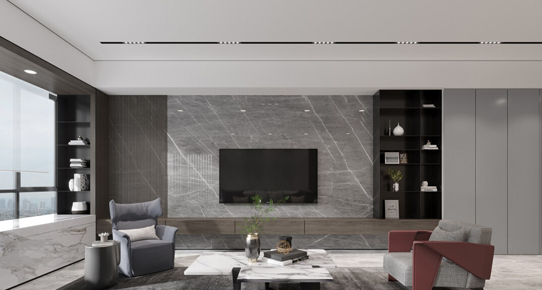 青鋼小鎮(zhèn)100㎡三室兩廳客廳電視背景墻現(xiàn)代簡約風格裝修案例效果圖
