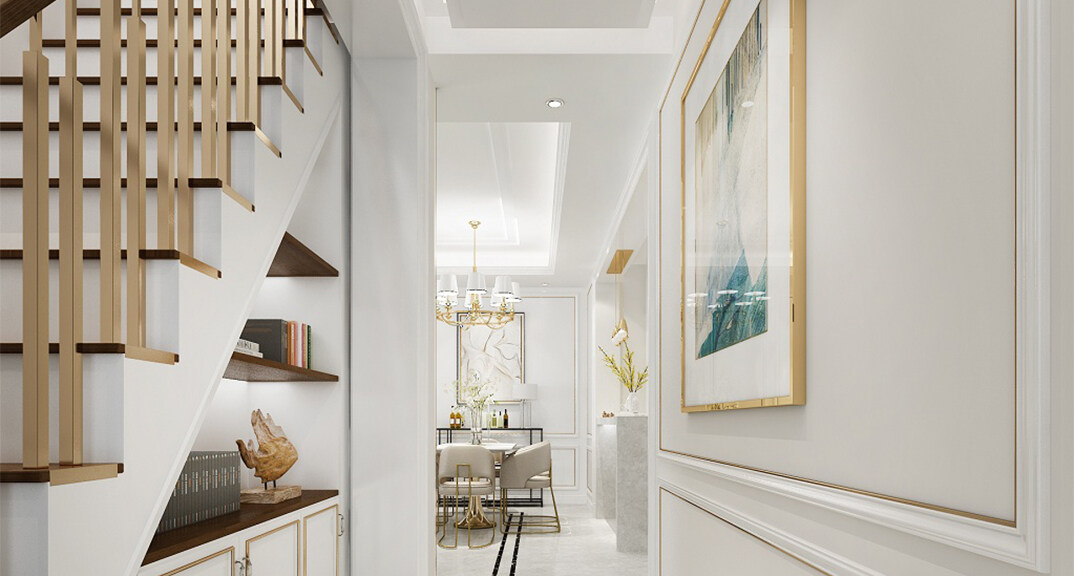 和達(dá)璟城128㎡洋房別墅樓梯走廊輕奢風(fēng)格裝修案例效果圖