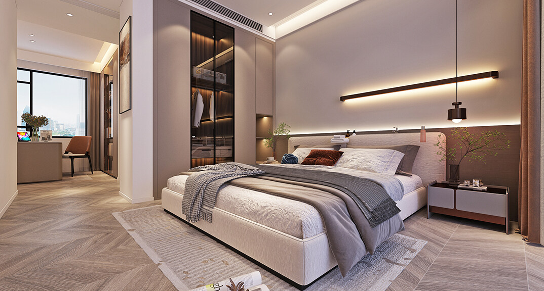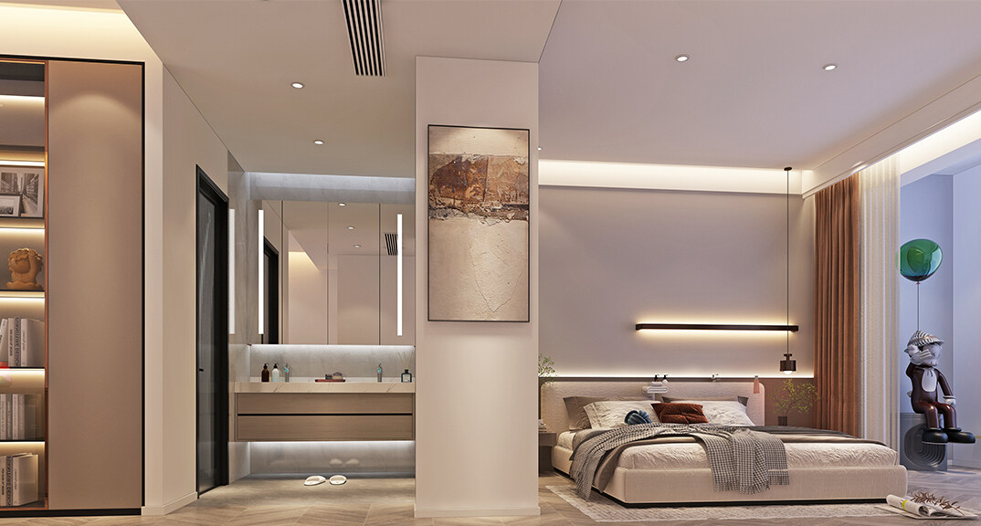 青特悅海府175㎡四室兩廳臥室現(xiàn)代簡約風格裝修案例效果圖