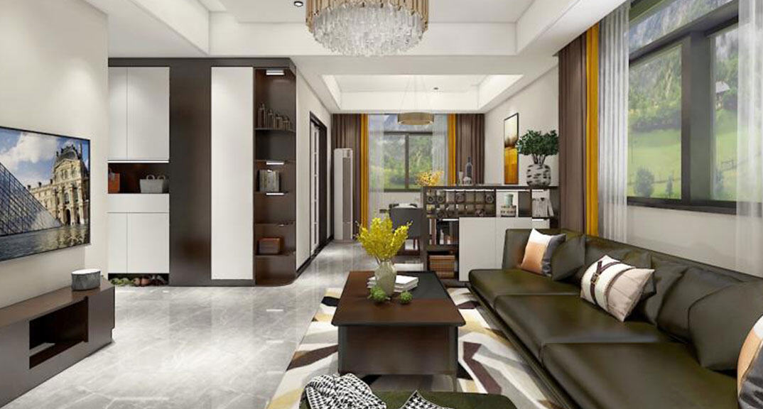 本案整體以現(xiàn)代中式風(fēng)格為主,既有現(xiàn)代風(fēng)格簡約、明朗的線條,又有中國傳統(tǒng)內(nèi)涵與韻味。墻面大面積使用暖色烘托整體氛圍,融洽中式與現(xiàn)代簡約兩種風(fēng)格。空間更寬闊舒適玄關(guān)收納、玄關(guān)與干區(qū)相結(jié)合,既解放的外衛(wèi)的空間客廳電視背景是一面裝飾柜,豐富了空間,增加了收納和儲物,美觀又實(shí)用。