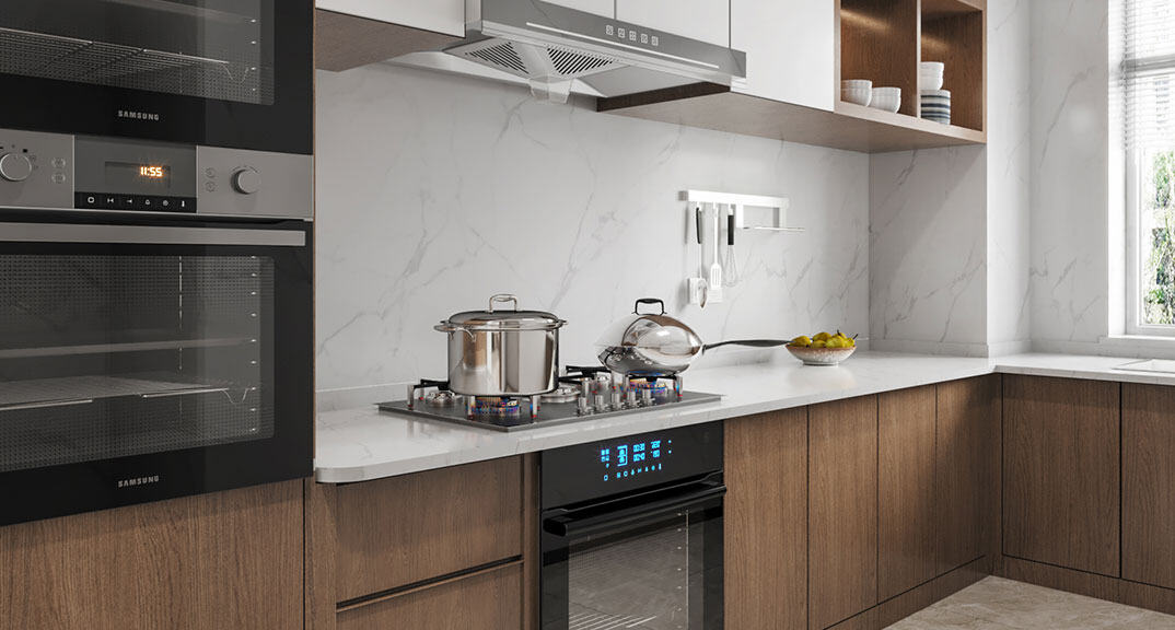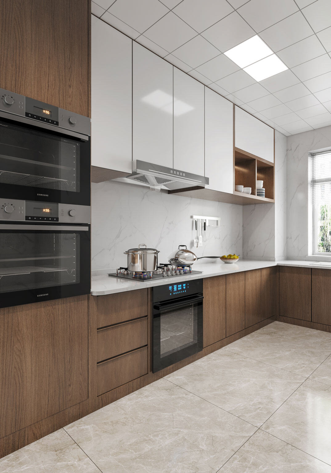 魯商藍岸公館125㎡三室兩廳廚房新中式風(fēng)格裝修案例效果圖