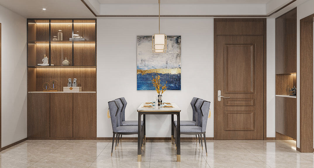 魯商藍岸公館125㎡三室兩廳餐廳新中式風(fēng)格裝修案例效果圖