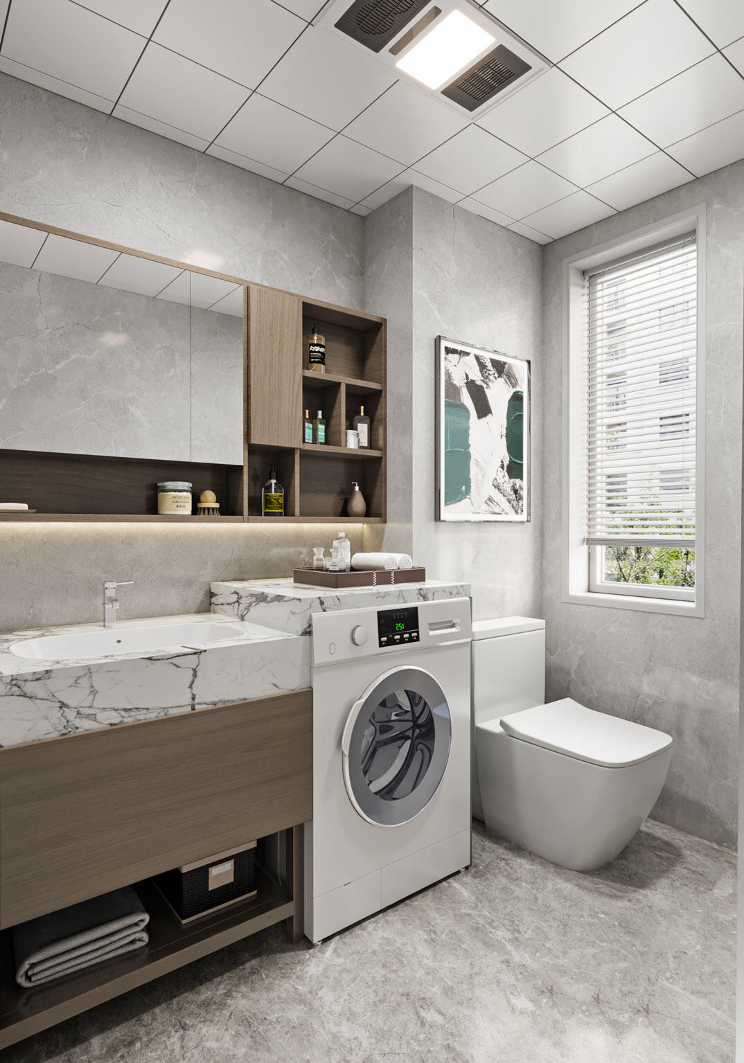 魯商藍岸公館125㎡三室兩廳衛(wèi)生間新中式風(fēng)格裝修案例效果圖