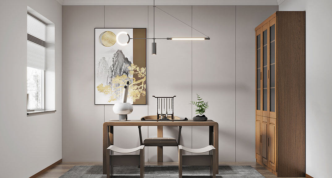魯商藍岸公館125㎡三室兩廳書房新中式風(fēng)格裝修案例效果圖