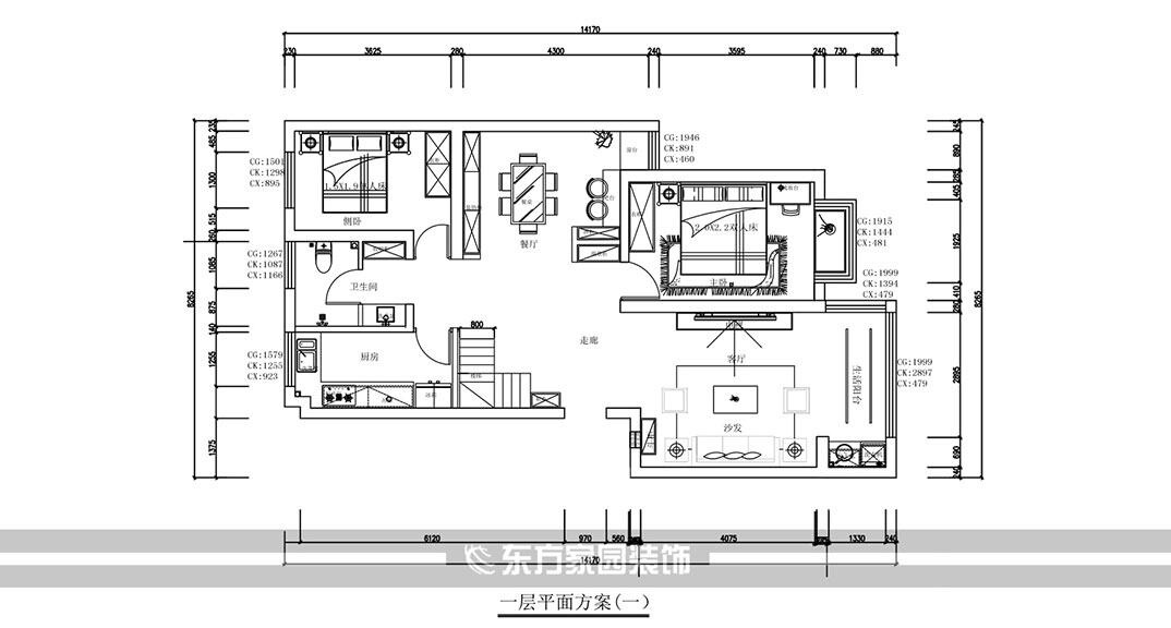 新城花園140㎡平層現(xiàn)代風格裝修案例效果圖