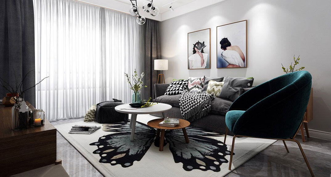 冷靜的灰色與淡綠色調(diào),給人一種清靜的自然感受,仿佛擁有一片干凈清純時光,能夠在寧靜的歲月里從容自得。通過強調(diào)原色之間的對比協(xié)調(diào)來追求一種具有普遍意義的永恒。裝飾畫、織物的選擇對于整個色彩效果也起到點明主題的作用。通過完美的曲線,精益求精的細節(jié)處理,帶給家人不盡的舒適觸感。