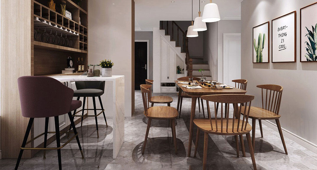 沙墩生活區(qū)130㎡復(fù)式餐廳北歐風格裝修案例效果圖
