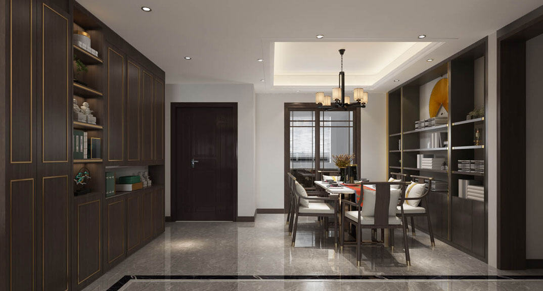 永麗花園158㎡三室兩廳餐廳新中式風(fēng)格裝修案例效果圖